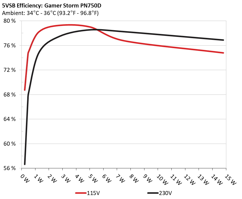 This graph depicts the efficiency levels of the 5VSB rail with 115V and 230V input