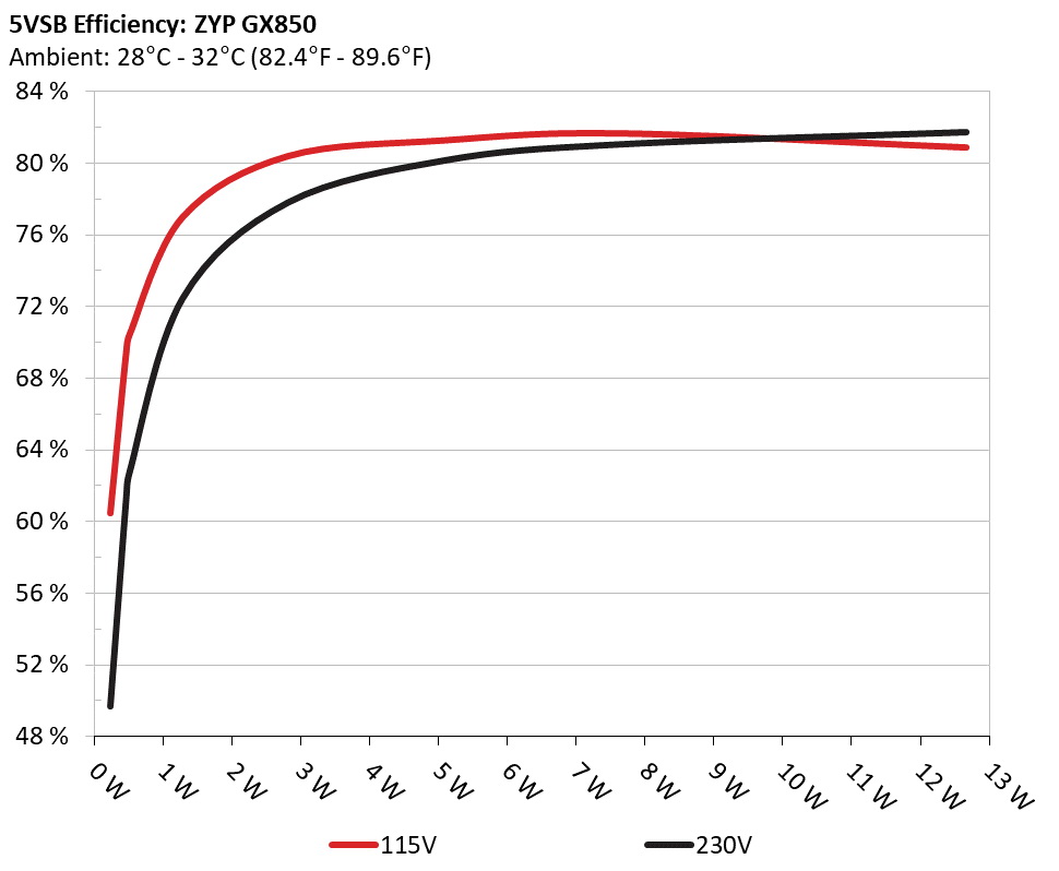 This graph depicts the efficiency levels of the 5VSB rail with 115V and 230V input