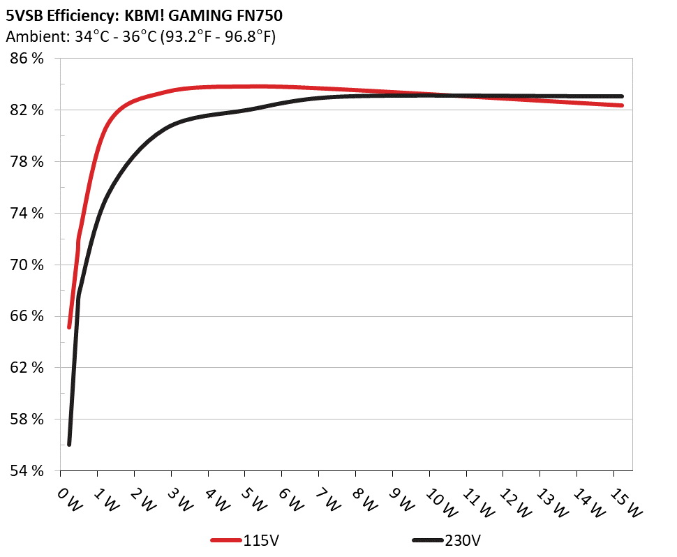 This graph depicts the efficiency levels of the 5VSB rail with 115V and 230V input