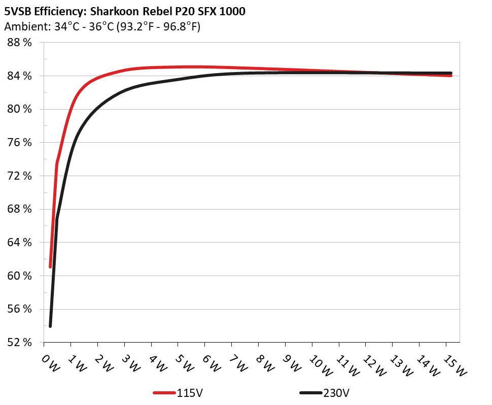 This graph depicts the efficiency levels of the 5VSB rail with 115V and 230V input