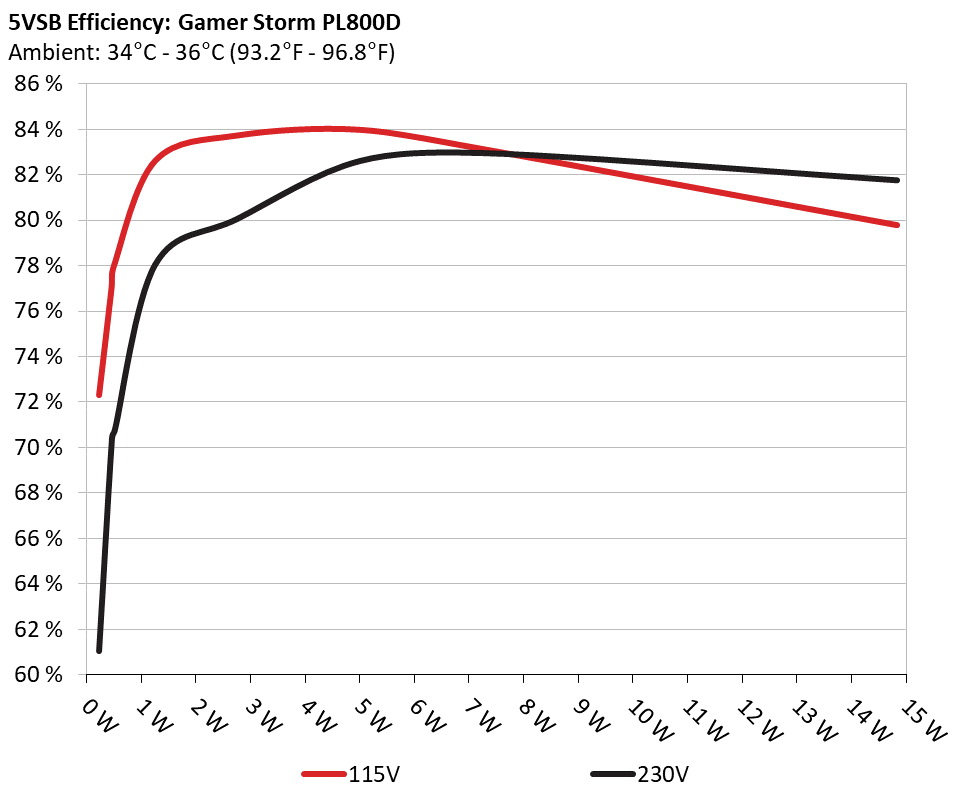 This graph depicts the efficiency levels of the 5VSB rail with 115V and 230V input