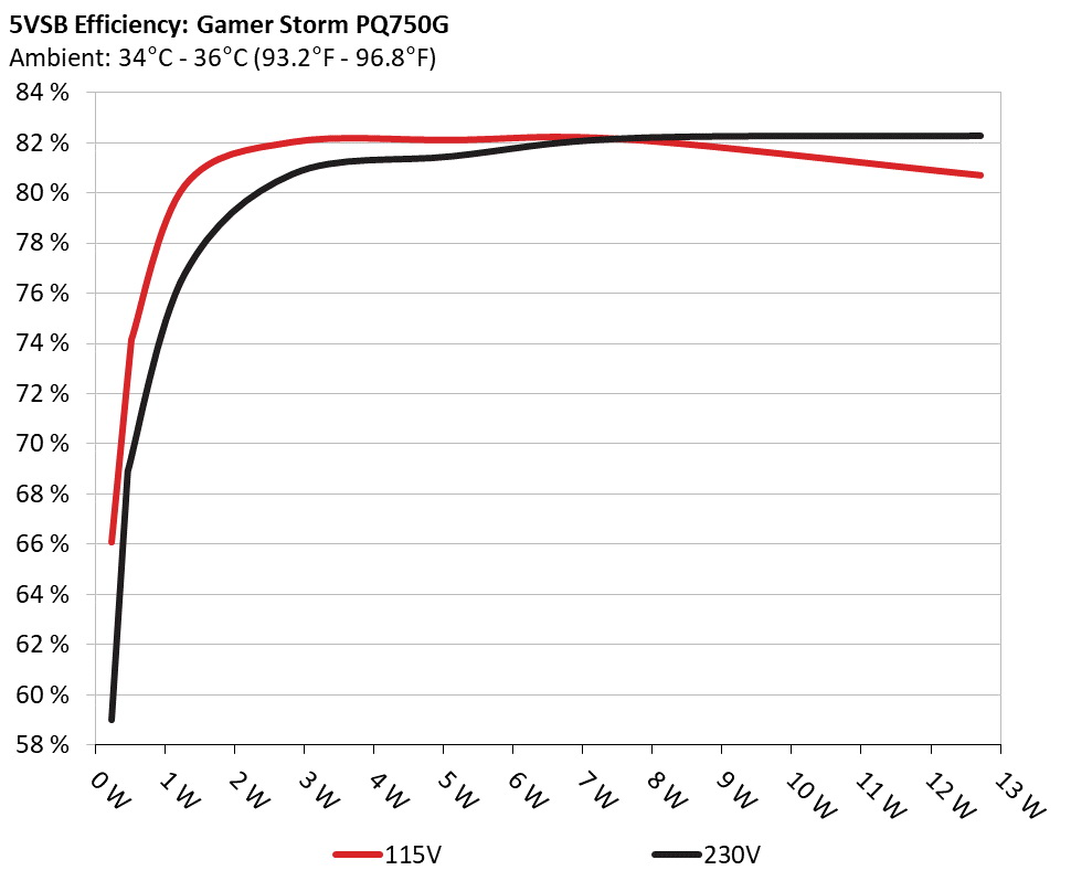 This graph depicts the efficiency levels of the 5VSB rail with 115V and 230V input