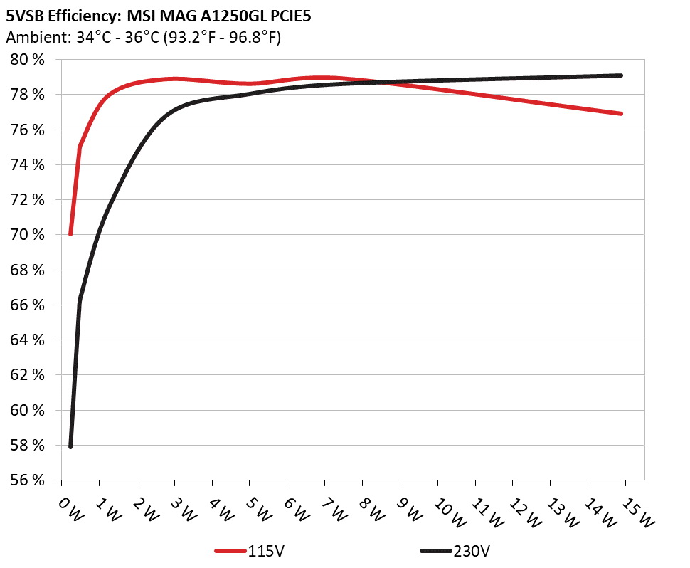 This graph depicts the efficiency levels of the 5VSB rail with 115V and 230V input
