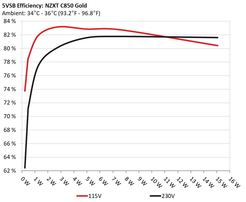 This graph depicts the efficiency levels of the 5VSB rail with 115V and 230V input