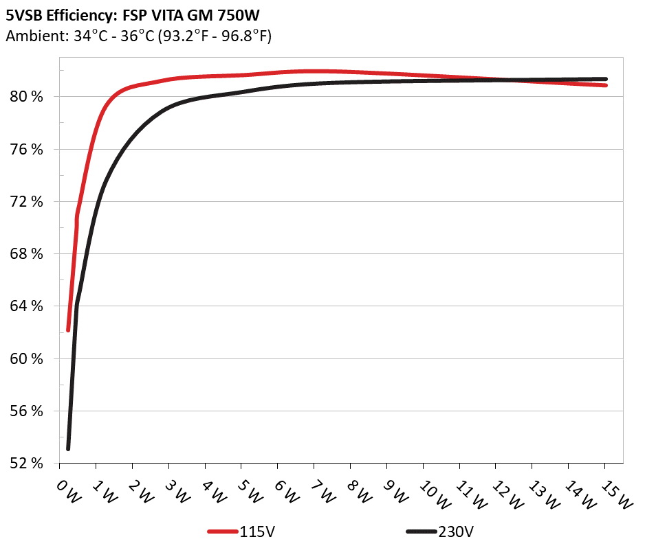 This graph depicts the efficiency levels of the 5VSB rail with 115V and 230V input