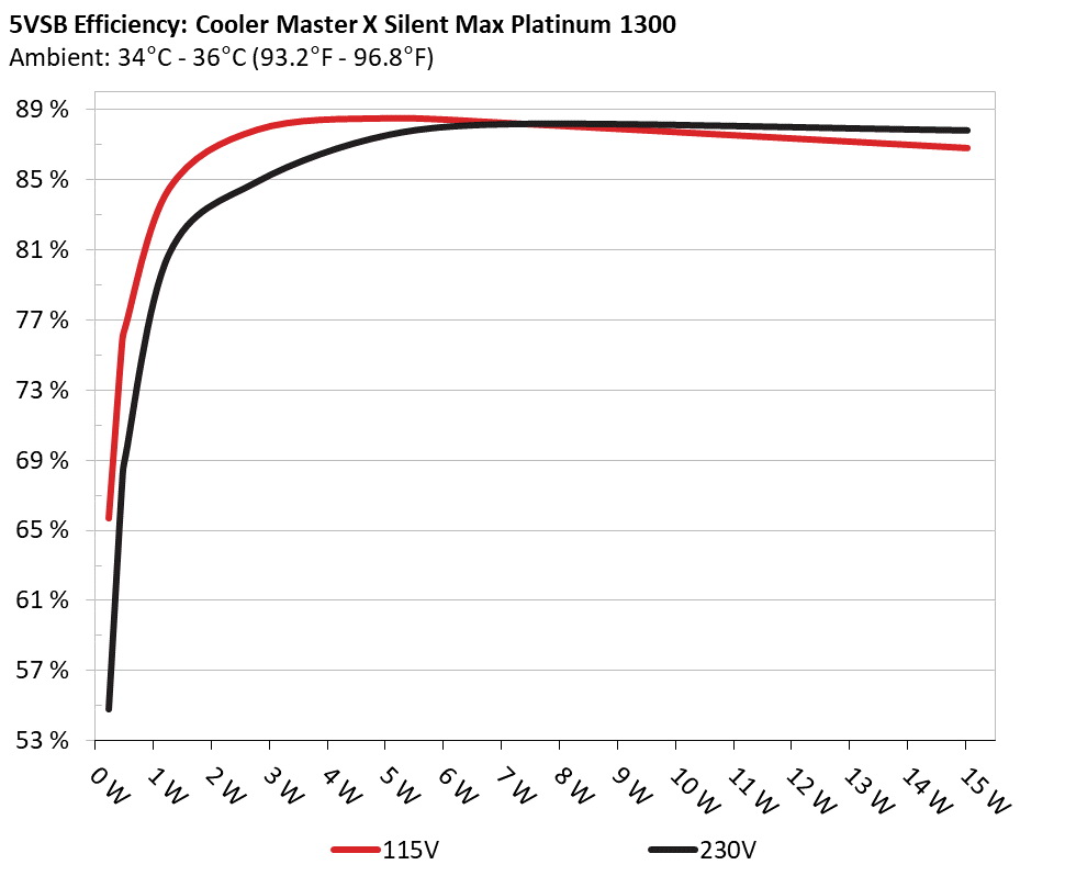 This graph depicts the efficiency levels of the 5VSB rail with 115V and 230V input