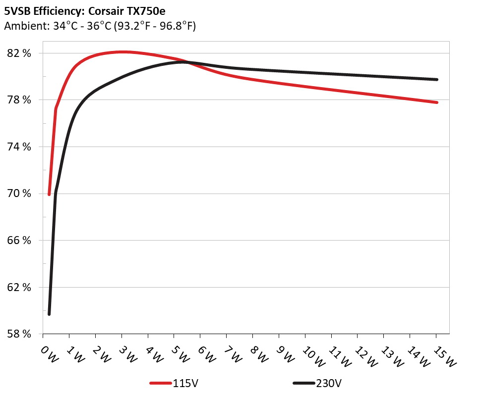 This graph depicts the efficiency levels of the 5VSB rail with 115V and 230V input