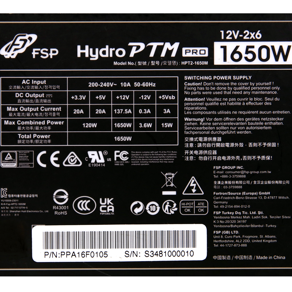 FSP Technology Hydro PTM Pro 1650W (ATXv3.1)