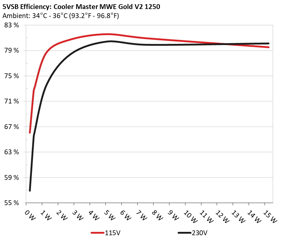 This graph depicts the efficiency levels of the 5VSB rail with 115V and 230V input