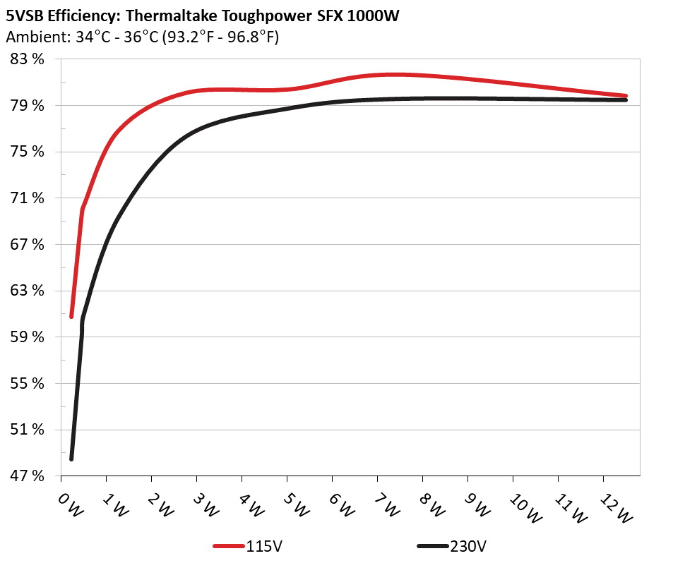 This graph depicts the efficiency levels of the 5VSB rail with 115V and 230V input