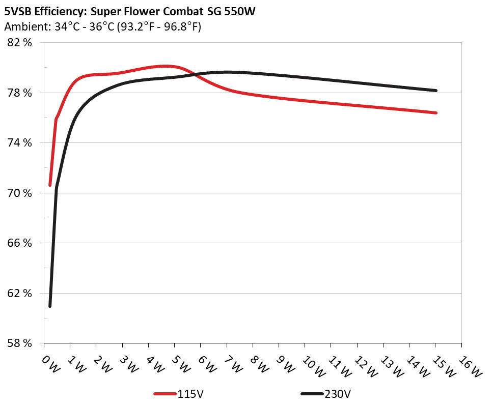 This graph depicts the efficiency levels of the 5VSB rail with 115V and 230V input
