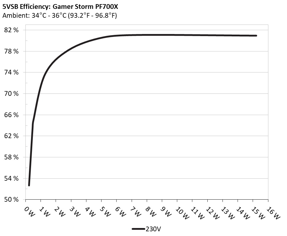 This graph depicts the efficiency levels of the 5VSB rail with 115V and 230V input