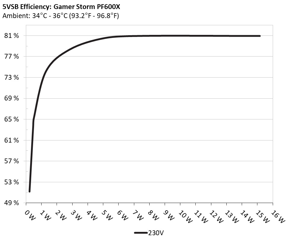 This graph depicts the efficiency levels of the 5VSB rail with 115V and 230V input