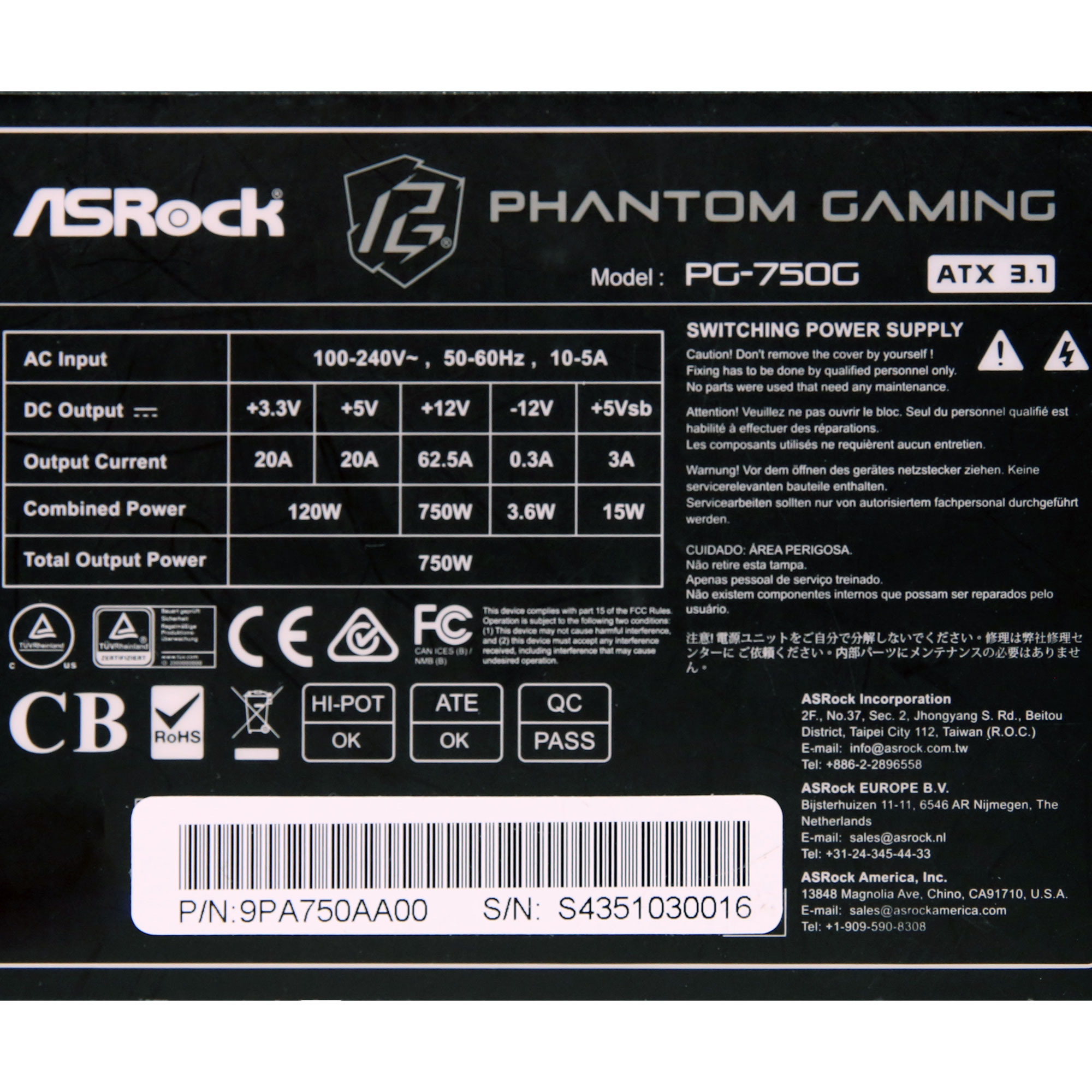 ASRock Phantom Gaming PG-750G (ATX v3.1)