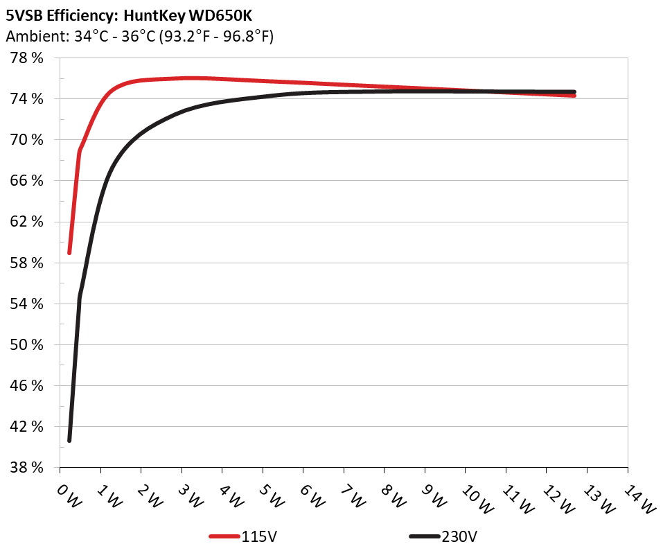This graph depicts the efficiency levels of the 5VSB rail with 115V and 230V input