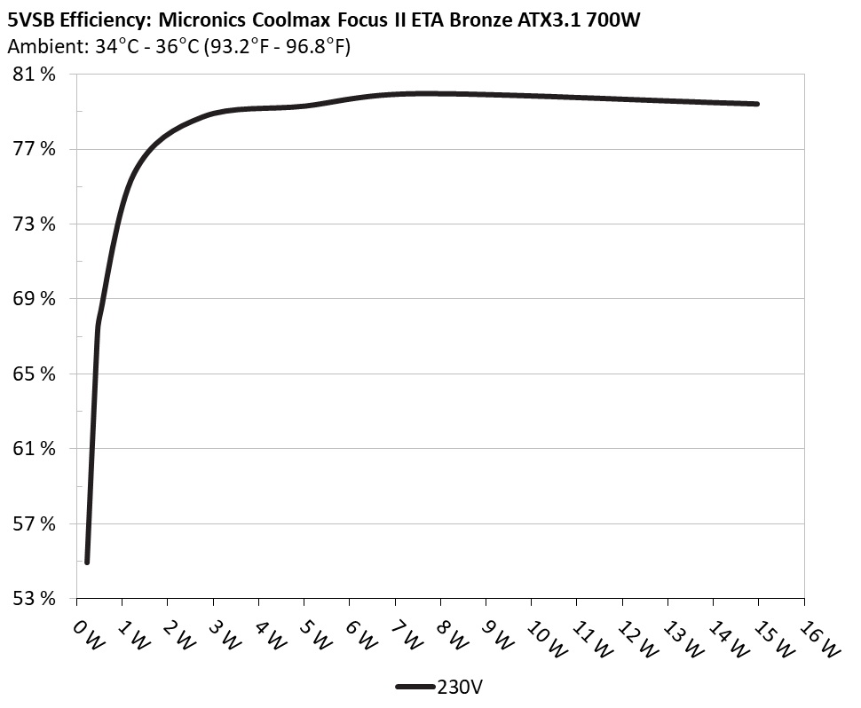 This graph depicts the efficiency levels of the 5VSB rail with 115V and 230V input
