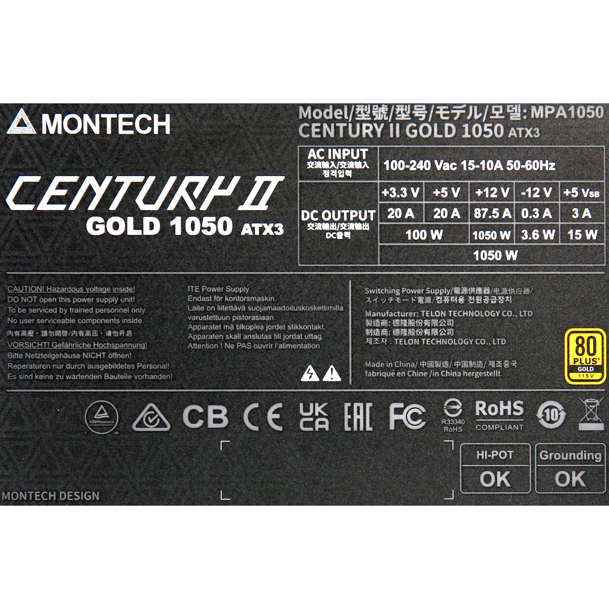 | Transient Filter | 4x Y caps, 2x X caps, 2x CM chokes, 1x MOV |