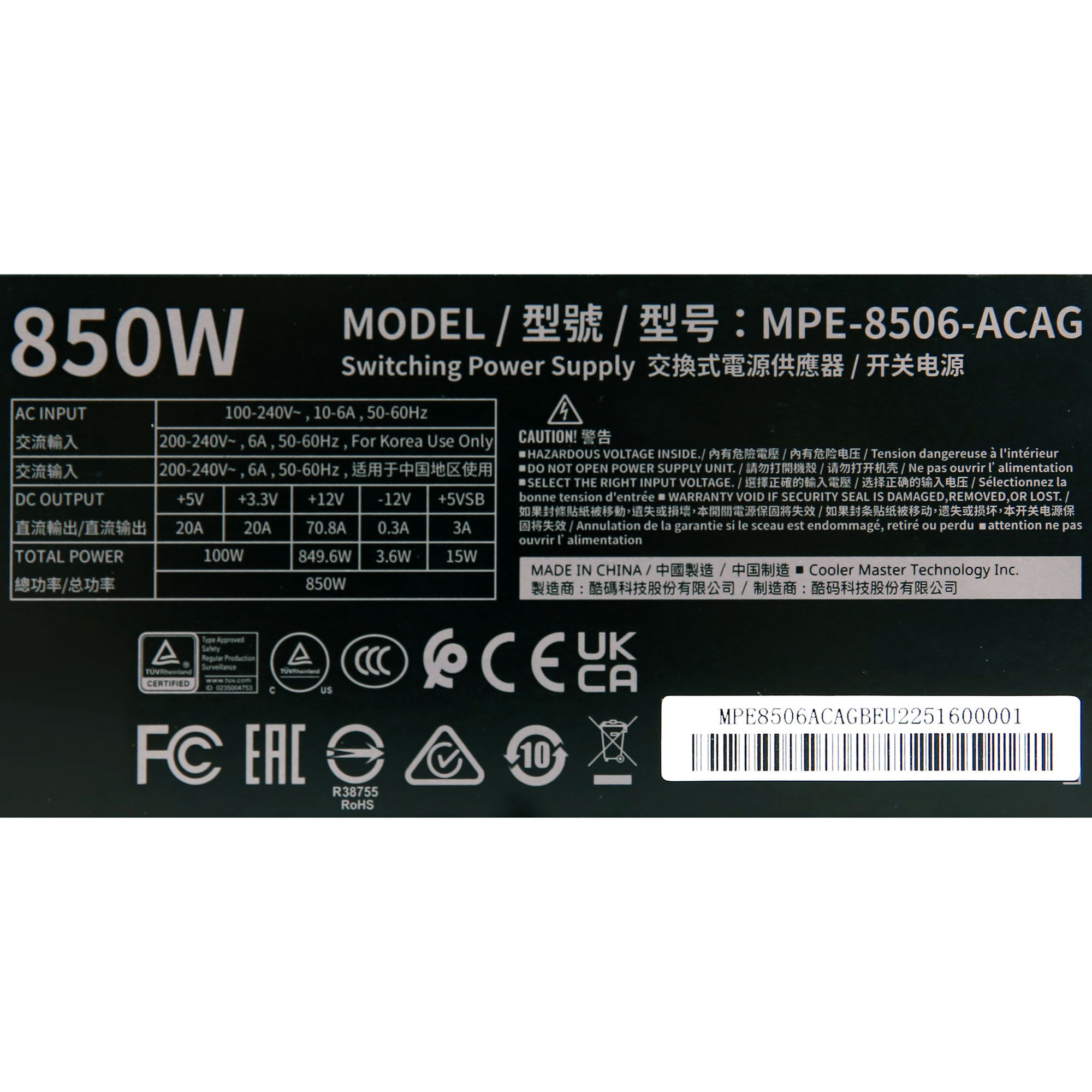 Cooler Master MWE GOLD 850 V3 Non-modular