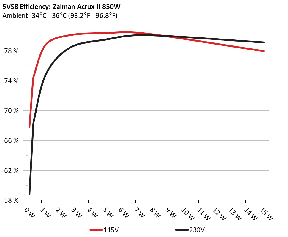 This graph depicts the efficiency levels of the 5VSB rail with 115V and 230V input