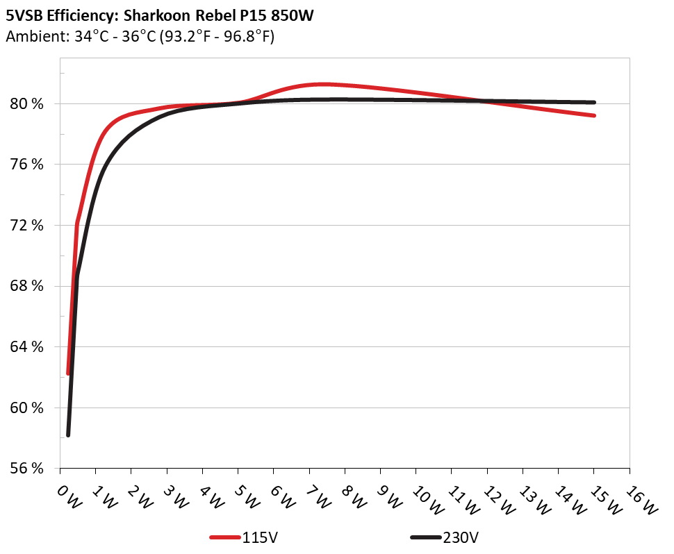 This graph depicts the efficiency levels of the 5VSB rail with 115V and 230V input