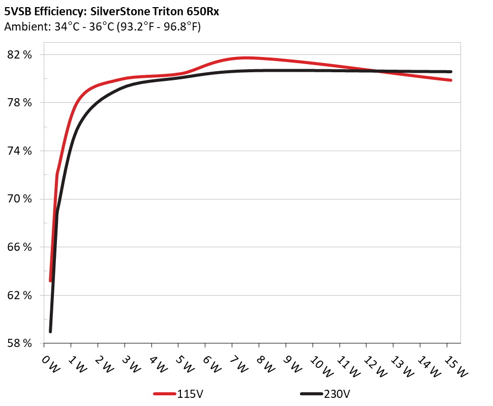 This graph depicts the efficiency levels of the 5VSB rail with 115V and 230V input