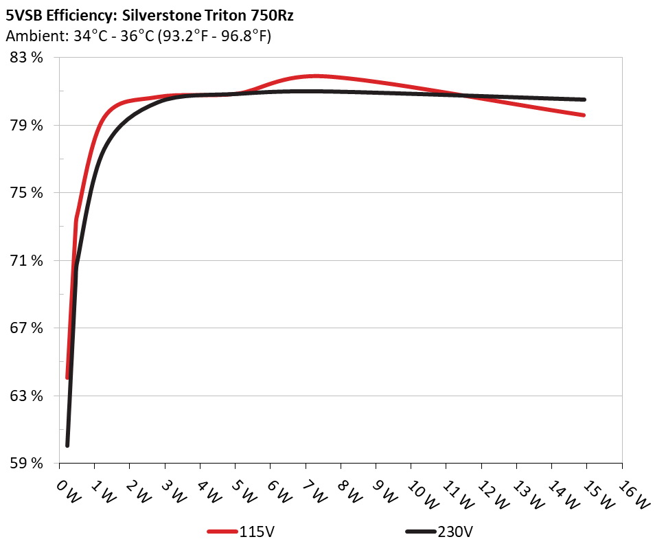 This graph depicts the efficiency levels of the 5VSB rail with 115V and 230V input