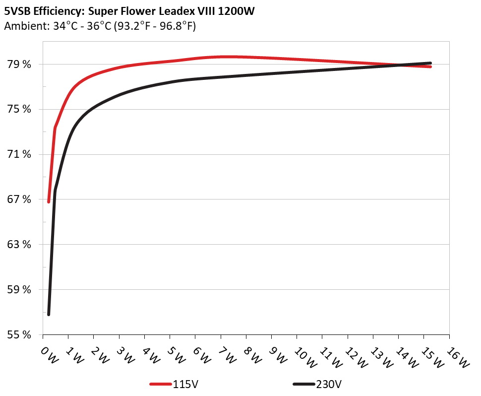 This graph depicts the efficiency levels of the 5VSB rail with 115V and 230V input