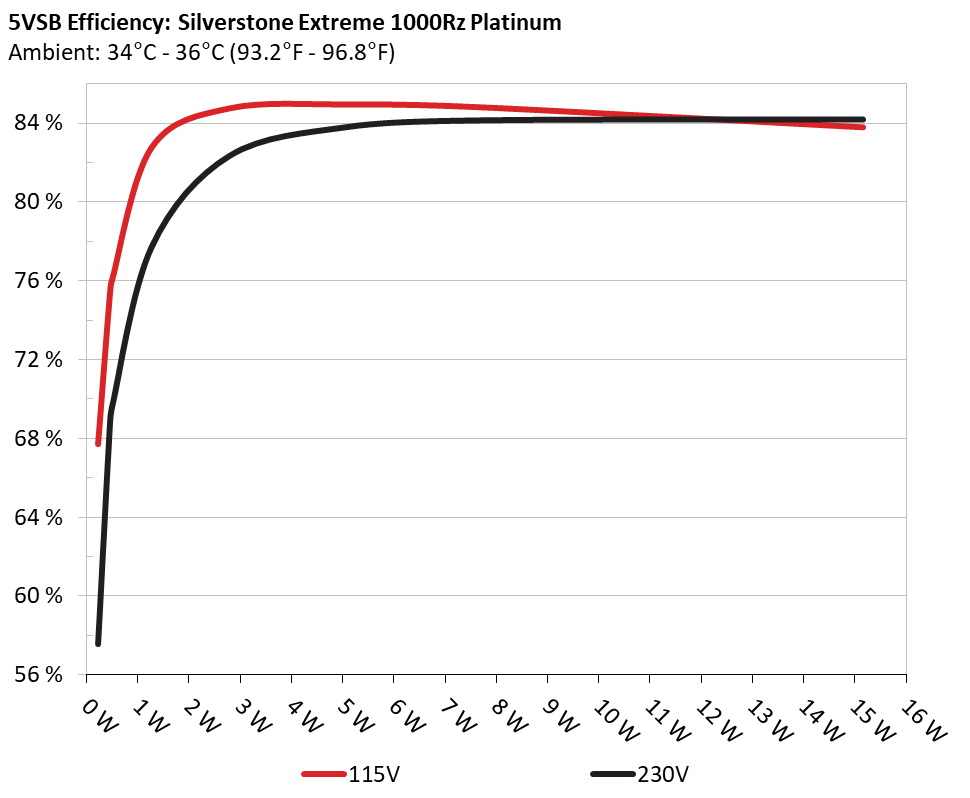 This graph depicts the efficiency levels of the 5VSB rail with 115V and 230V input