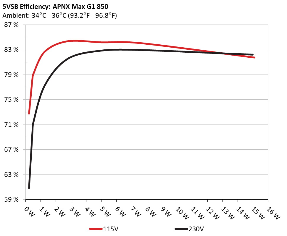 This graph depicts the efficiency levels of the 5VSB rail with 115V and 230V input