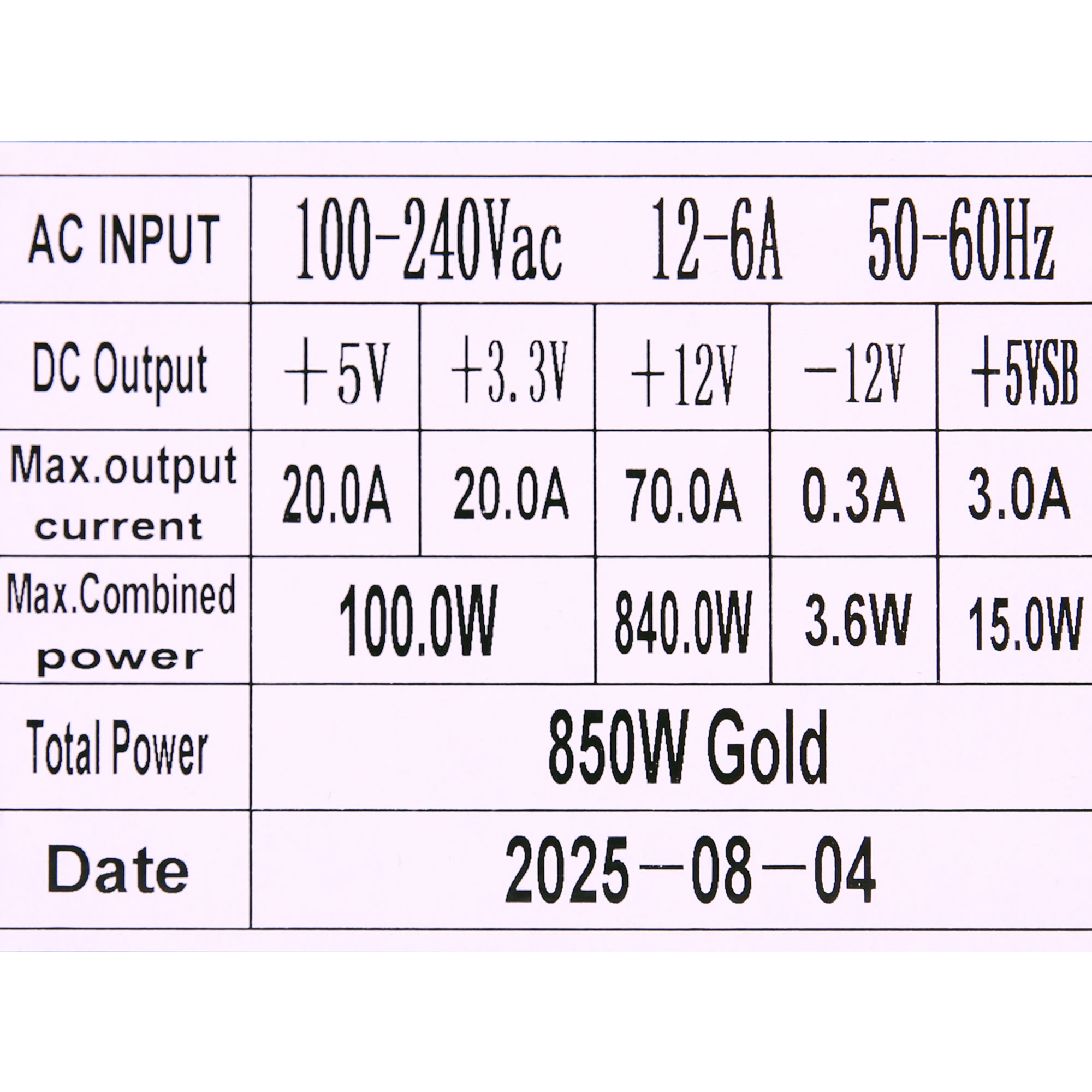 Power specifications label