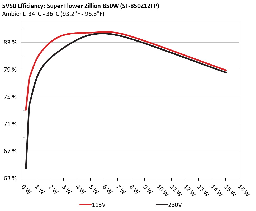 This graph depicts the efficiency levels of the 5VSB rail with 115V and 230V input