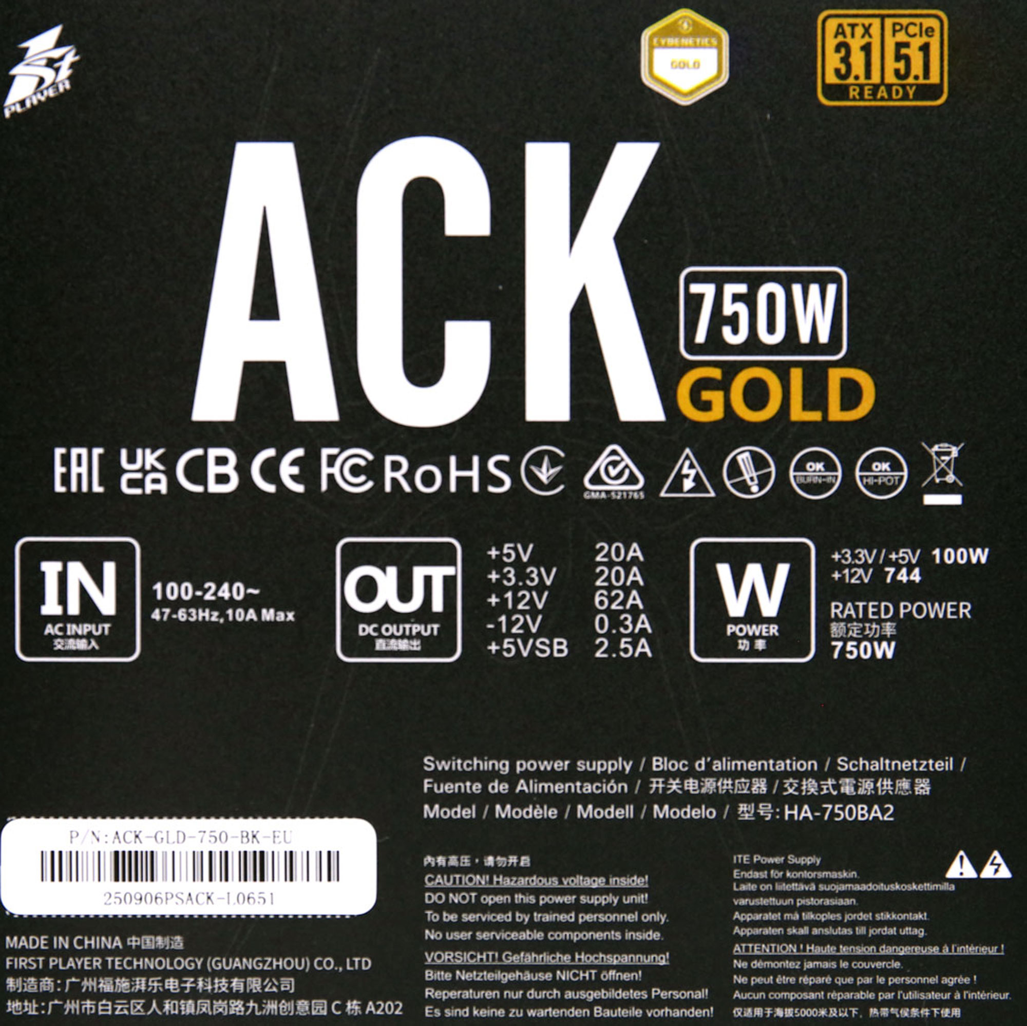 1st Player ACK 750W Gold