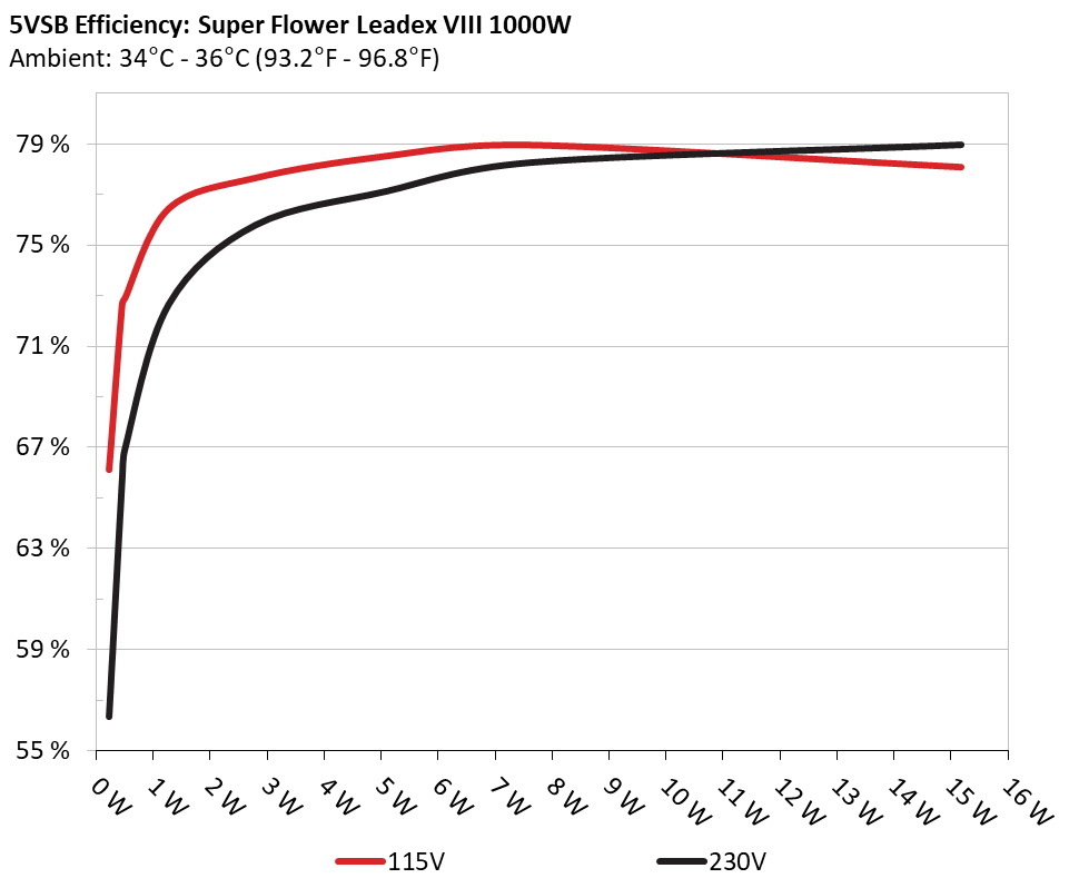 This graph depicts the efficiency levels of the 5VSB rail with 115V and 230V input