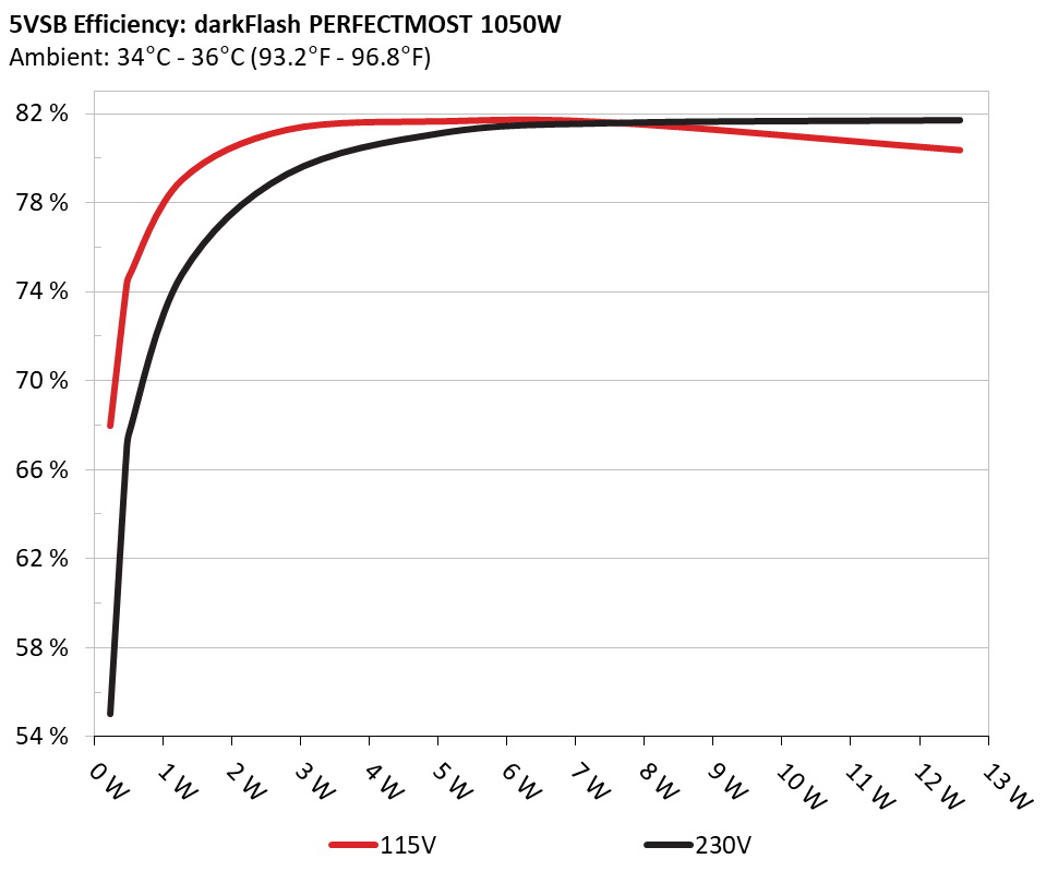 This graph depicts the efficiency levels of the 5VSB rail with 115V and 230V input