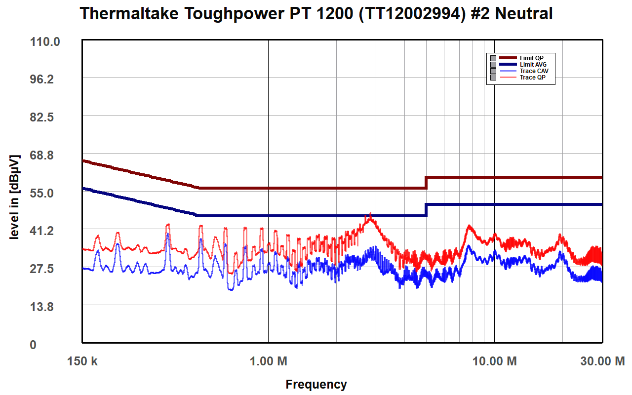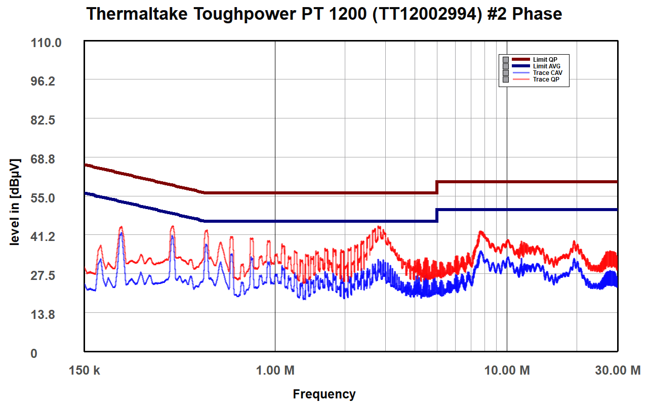 This graph depicts the PSU`s efficiency throughout its entire operational range. For the generation of the efficiency and noise graphs we set our loaders to auto mode through our custom-made software before trying thousands of possible load combinations