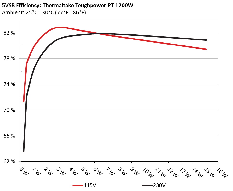 This graph depicts the efficiency levels of the 5VSB rail with 115V and 230V input