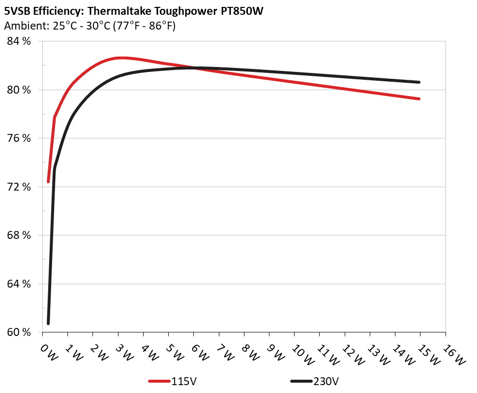 This graph depicts the efficiency levels of the 5VSB rail with 115V and 230V input