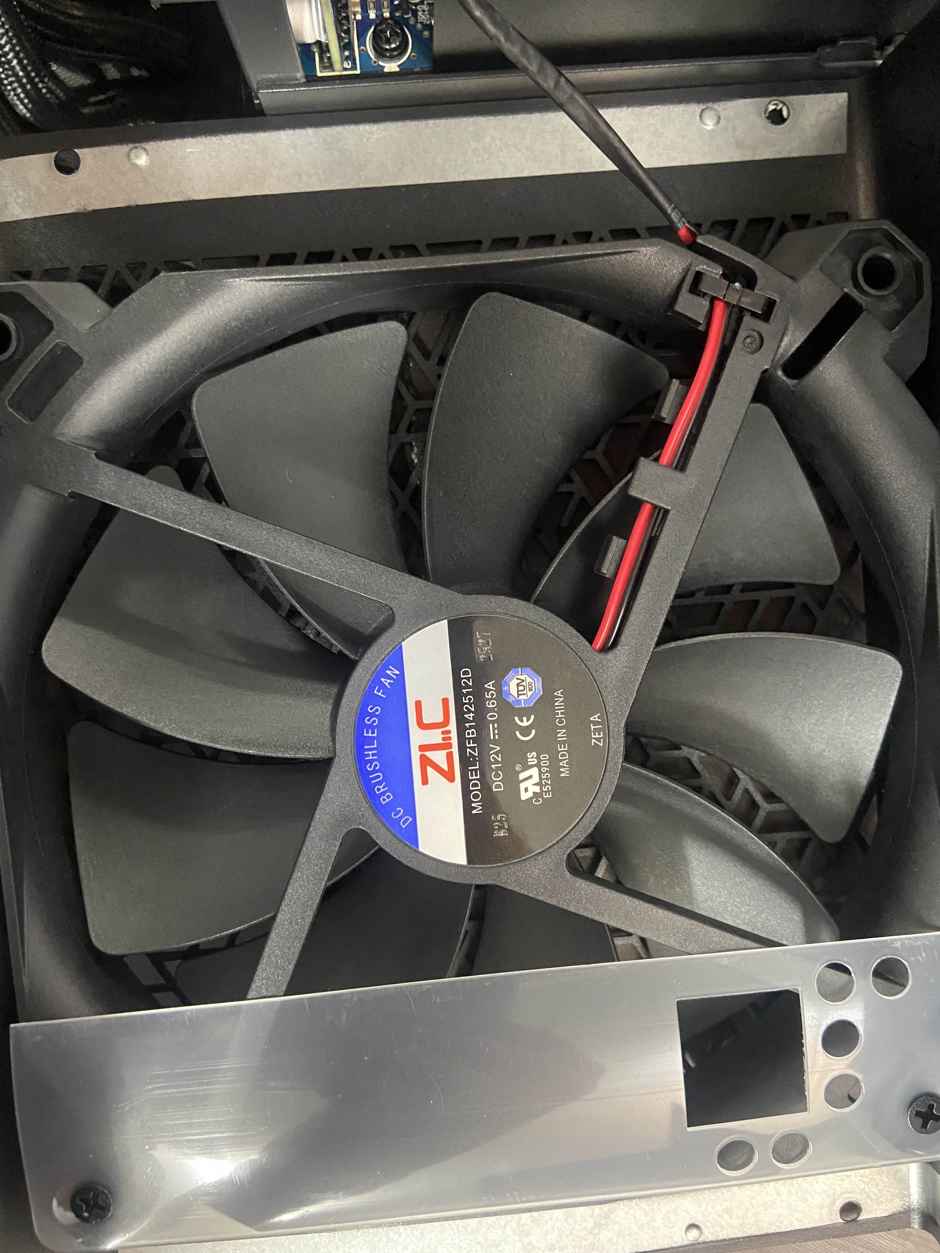 | Fan Model | ZIC ZFB142512D (140mm, 12V, 0.65A, Fluid Dynamic Bearing Fan) |