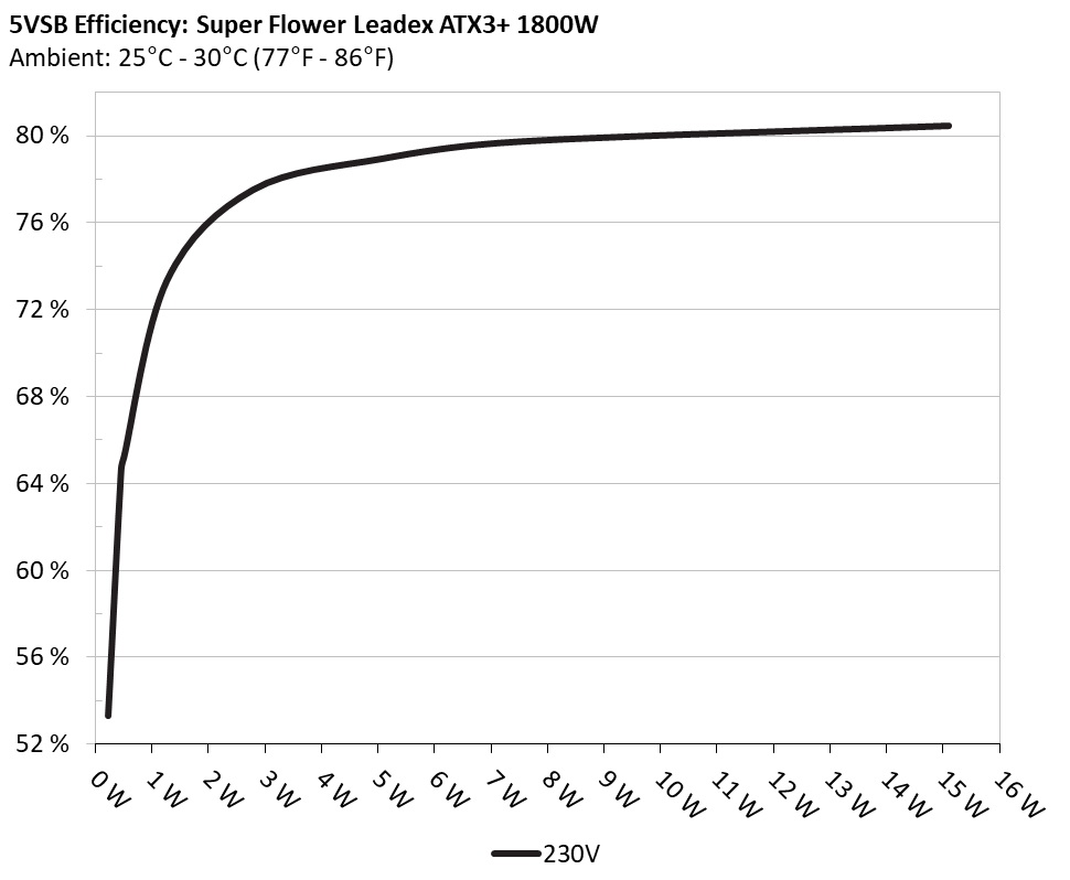 This graph depicts the efficiency levels of the 5VSB rail with 115V and 230V input