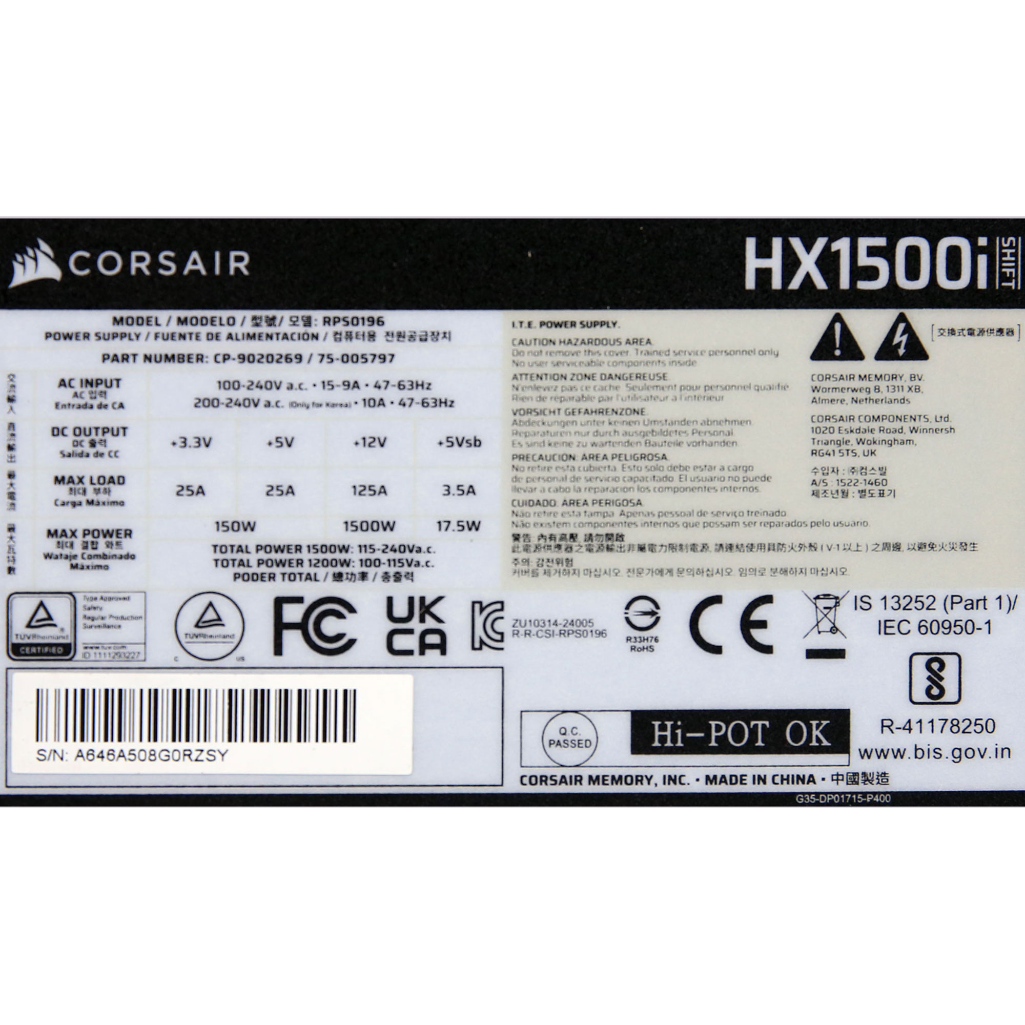 Corsair HX1500i Shift (ATX v3.1)