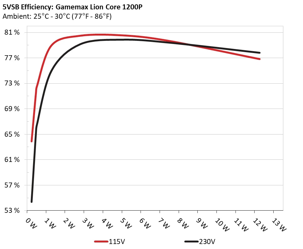 This graph depicts the efficiency levels of the 5VSB rail with 115V and 230V input