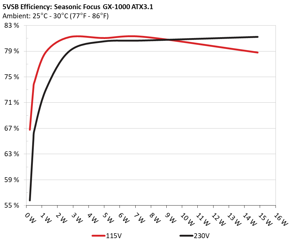This graph depicts the efficiency levels of the 5VSB rail with 115V and 230V input