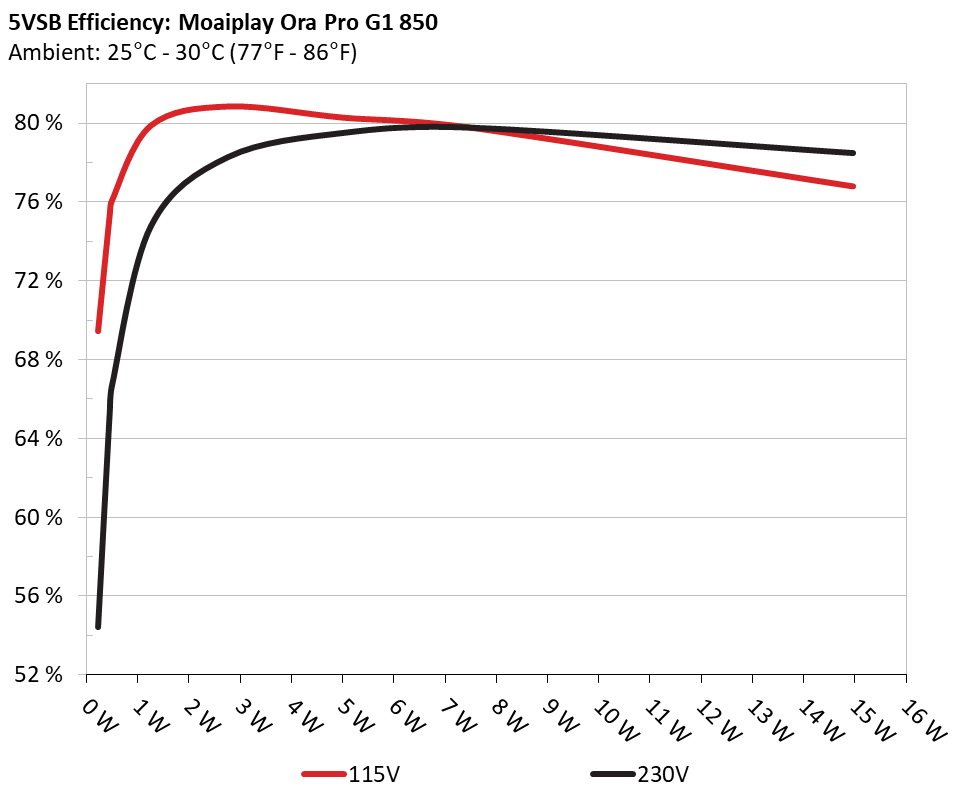 This graph depicts the efficiency levels of the 5VSB rail with 115V and 230V input
