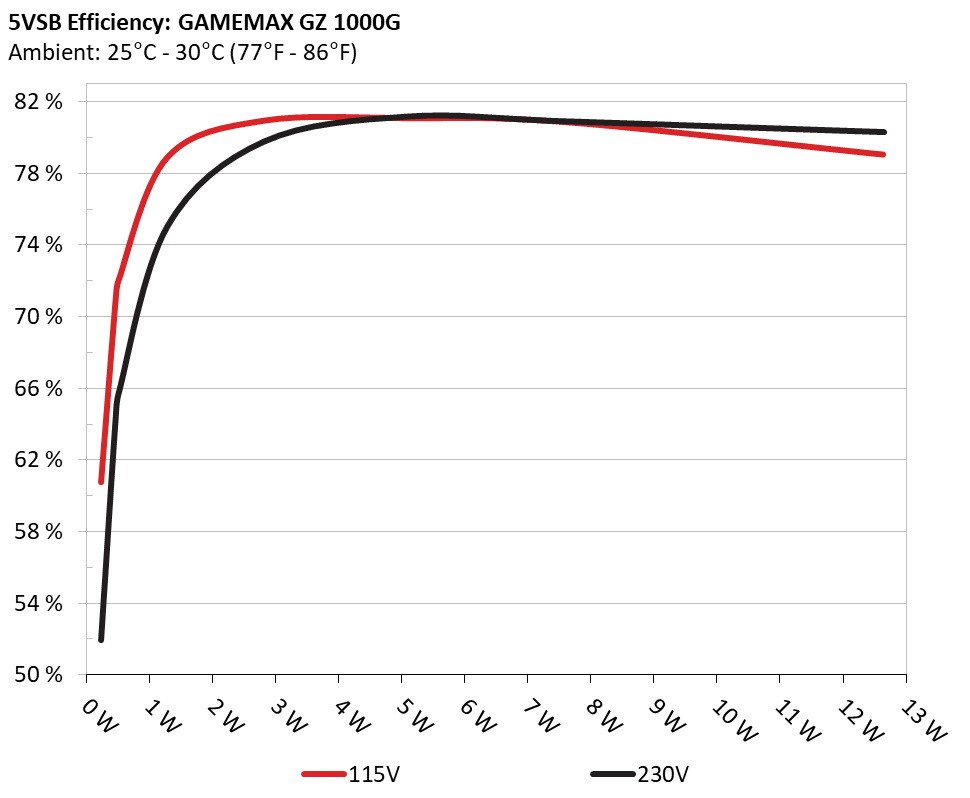 This graph depicts the efficiency levels of the 5VSB rail with 115V and 230V input