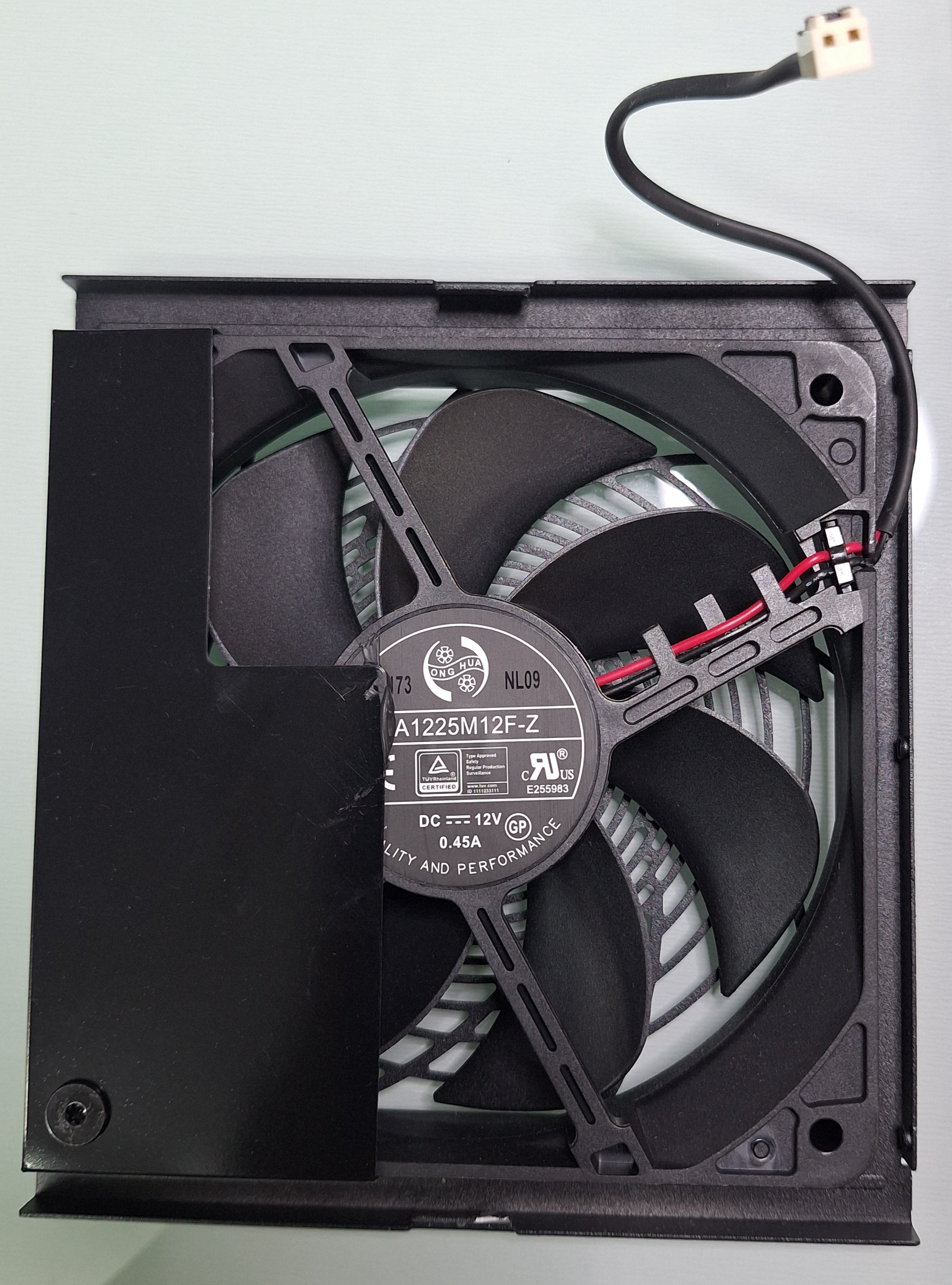 | Fan Model | Hong Hua HA1225M12F-Z (120mm, 12V, 0.45A, Fluid Dynamic Bearing Fan) |