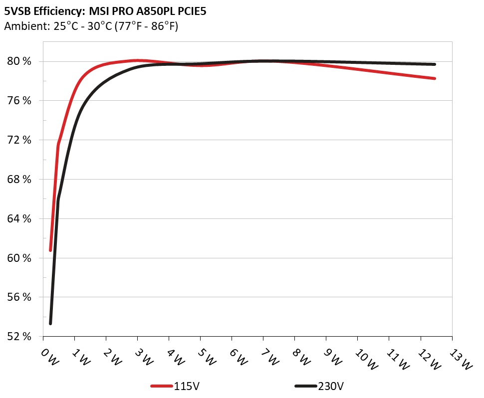 This graph depicts the efficiency levels of the 5VSB rail with 115V and 230V input