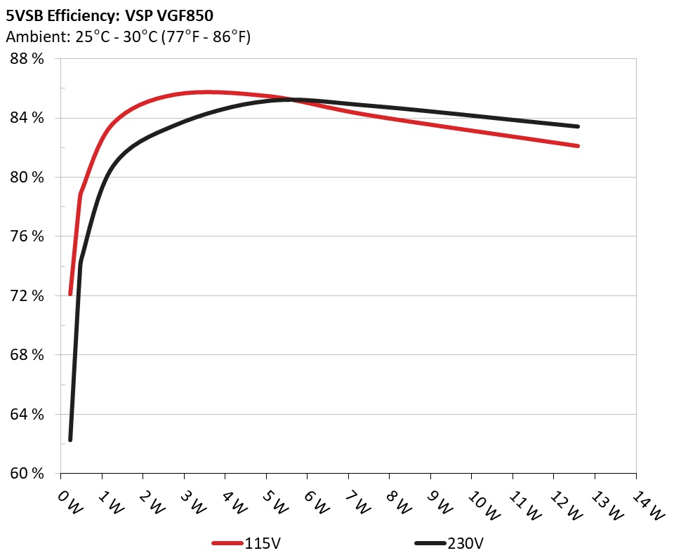 This graph depicts the efficiency levels of the 5VSB rail with 115V and 230V input