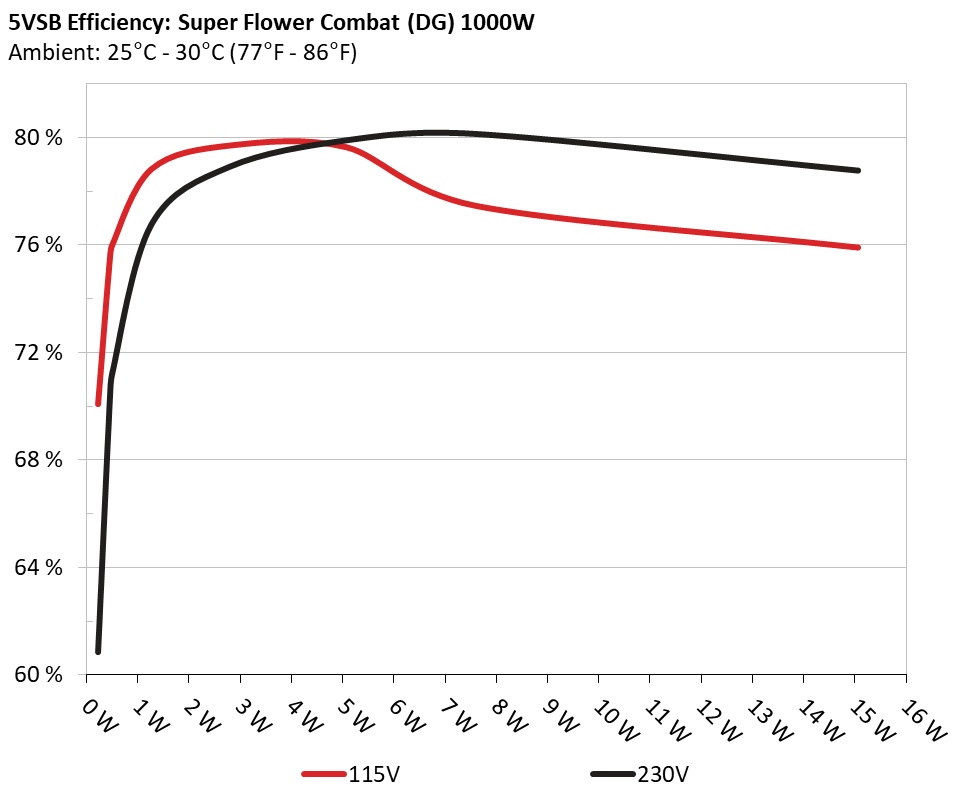 This graph depicts the efficiency levels of the 5VSB rail with 115V and 230V input