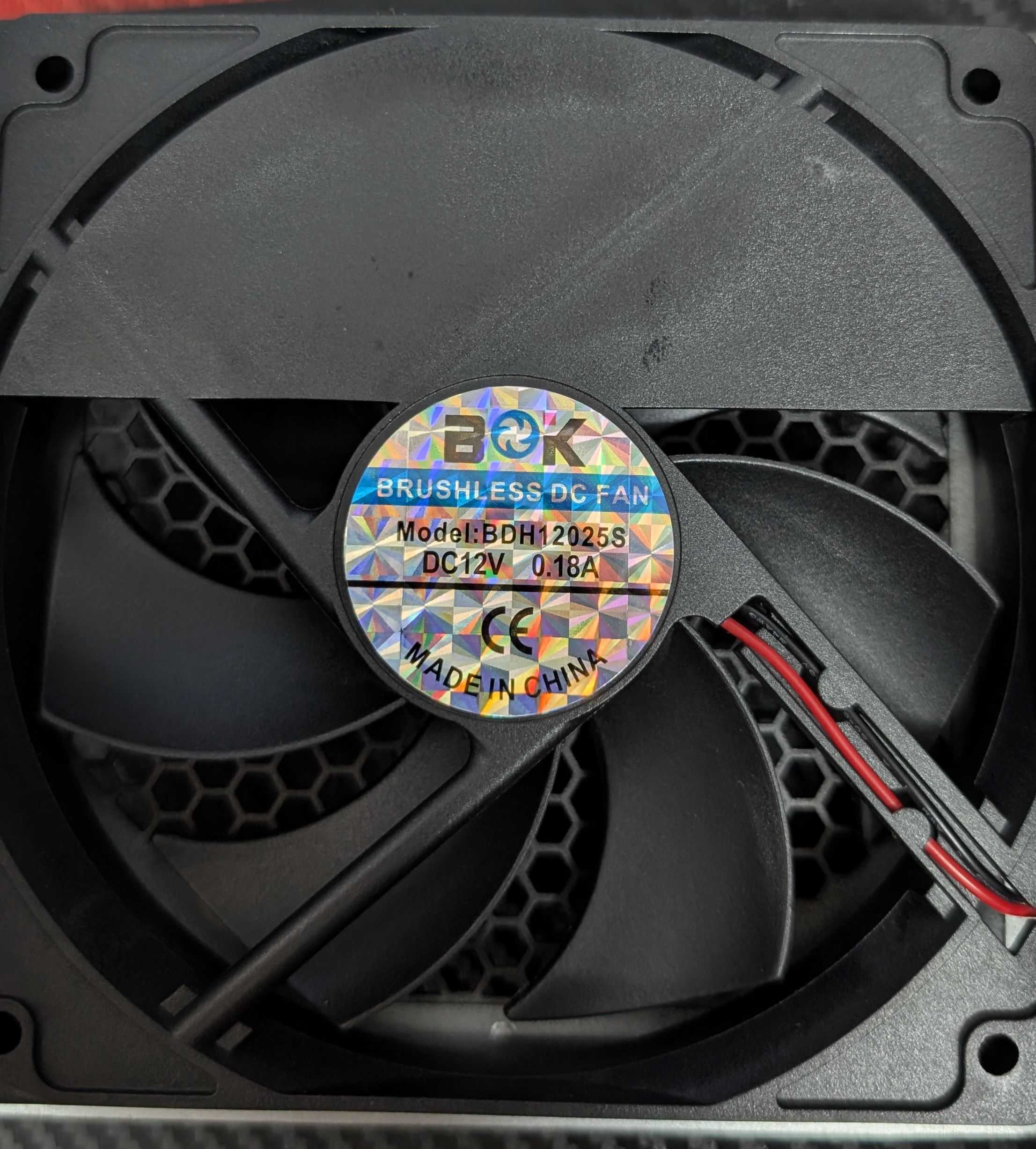 | Fan Model | BOK BDH12025S (120mm, 12V, 0.18A, Rifle Bearing) |