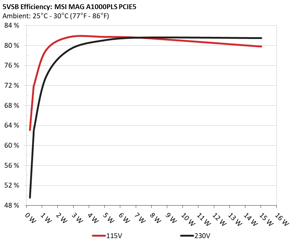 This graph depicts the efficiency levels of the 5VSB rail with 115V and 230V input